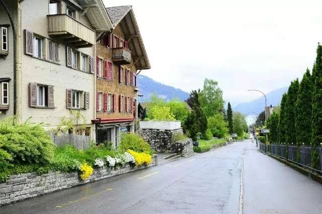 因特拉肯位于少女峰山腳下,介于圖恩湖與布里恩茨湖之間,又叫做湖間鎮。兩湖之間,湖光山色,明凈雅致。在因特拉肯,既能泛舟湖上,又能登高攀峰,迷人又恬靜。一幢幢木質田園小別墅,古樸中帶點現代氣息,家家戶戶都用些許鮮花妝點門庭,這個英式小鎮四處走走,小而美的精致,大有人間天堂之感。